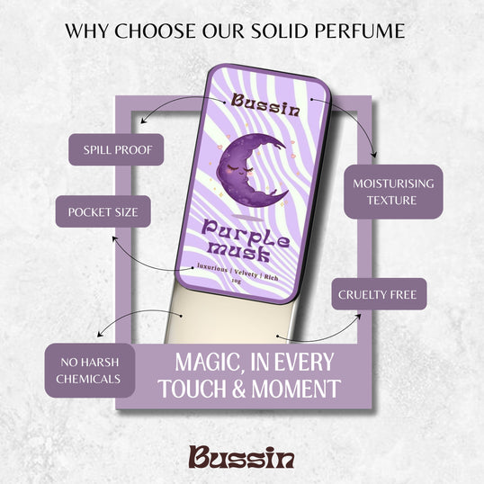 At Bussin, we believe what you put on your body should be as pure as the scents you love. That’s why our solid perfumes are crafted with a mindful selection of clean, skin-friendly ingredients—free from alcohol, sulfates, silicones, parabens, and harsh chemicals. Each formulation is cruelty-free, non-carcinogenic, and thoughtfully designed to be safe, gentle, and effective. Enjoy a truly conscious scent experience, made with care for you and the planet.